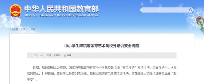 中小学生舞蹈等体育艺术类校外培训安全提醒